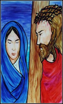 Droga Krzyżowa![]() STACJA IV Spotkanie z Matką Powiedz mi Maryjo Jak wyglądało to spotkanie Udało Ci się bez przeszkód Stanąć przed Jezusem? Jak zareagował tłum? Przepuścili Cię? Powiedz mi Maryjo o czym rozmawialiście? Jak się zachował? Czy był spokojny? A Ty, czy płakałaś? Co wtedy czułaś? Nienawiść, chęć zemsty, gniew. Proszę przyjąć Maryjo moje kondolencje Z powodu śmierci Syna Jestem głęboko zasmucony... Powiedz: czy mogę coś zrobić? Czy zgodzisz się zająć Jego miejsce? Czy zgodzisz się być moim synem? Któryś za nas cierpiał rany...